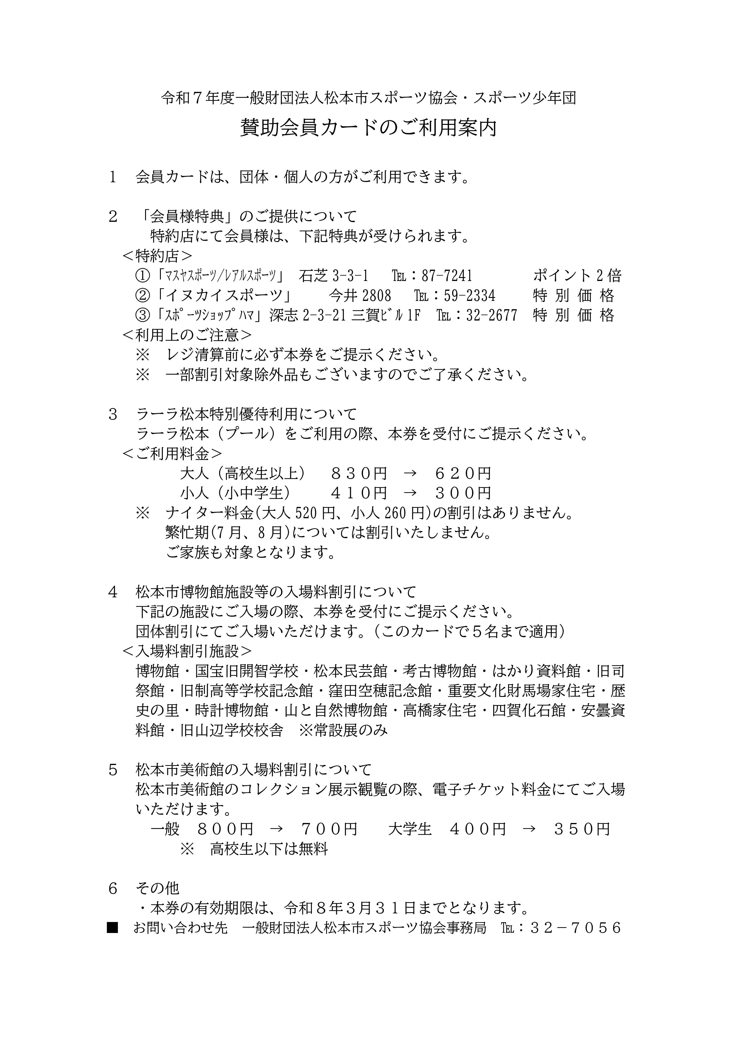 松本市スポーツ協会賛助会員趣意書